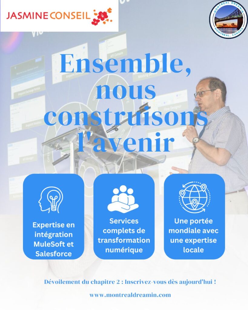 Jasmine Conseil est fier d’annoncer sa participation en tant que sponsor Trailblazer de Montréal Dreamin’ 2025, l’événement de référence pour les passionnés de Salesforce, MuleSoft et de technologies innovantes.